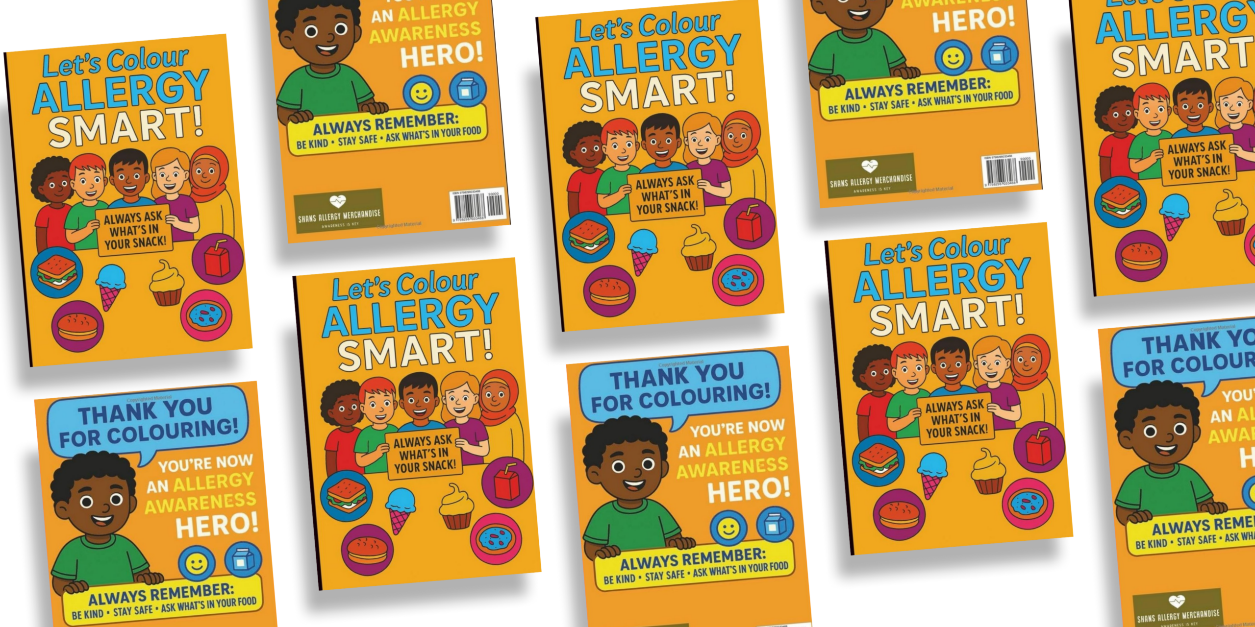 Colour and explore with Let’s Colour Allergy Smart. This is a fun and educational colouring book designed to help children understand the 14 most common food allergens in a gentle and engaging way.